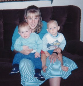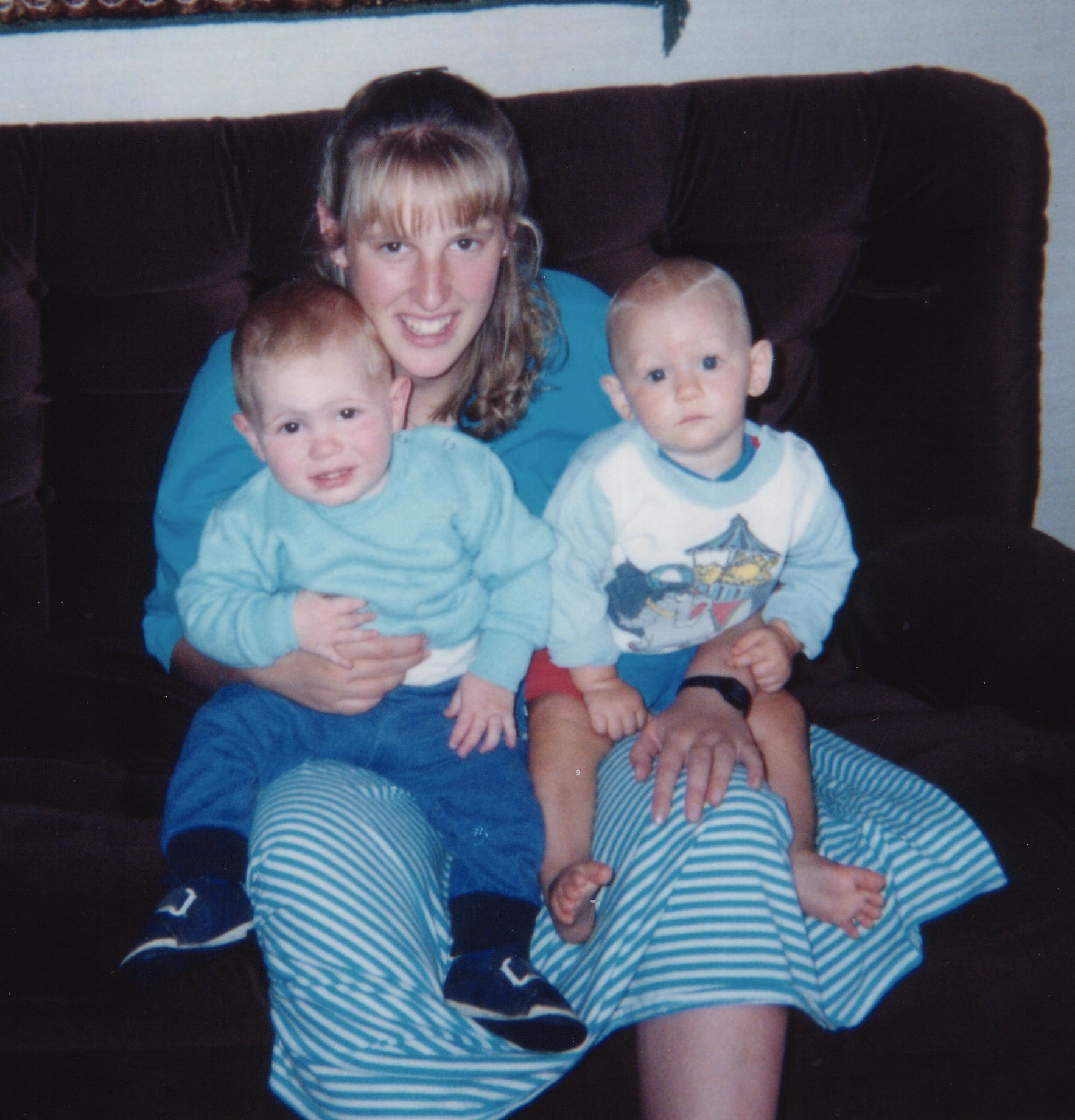 This picture was taken at the beginning of 1990. I was 17 and my son Antony was about 16 months old, and I am also holding my sister’s son Scott, who was 12 months old. I look ridiculously young and felt completely grown up.