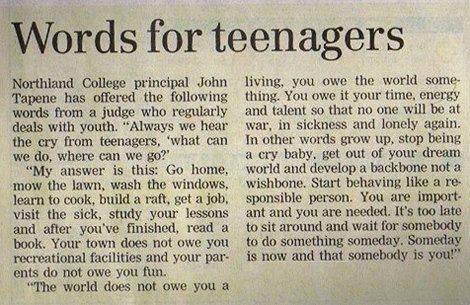 Grow up; quit being a crybaby. Get out of your dream world and develop a backbone, not a wishbone, and start acting like a man or a lady.