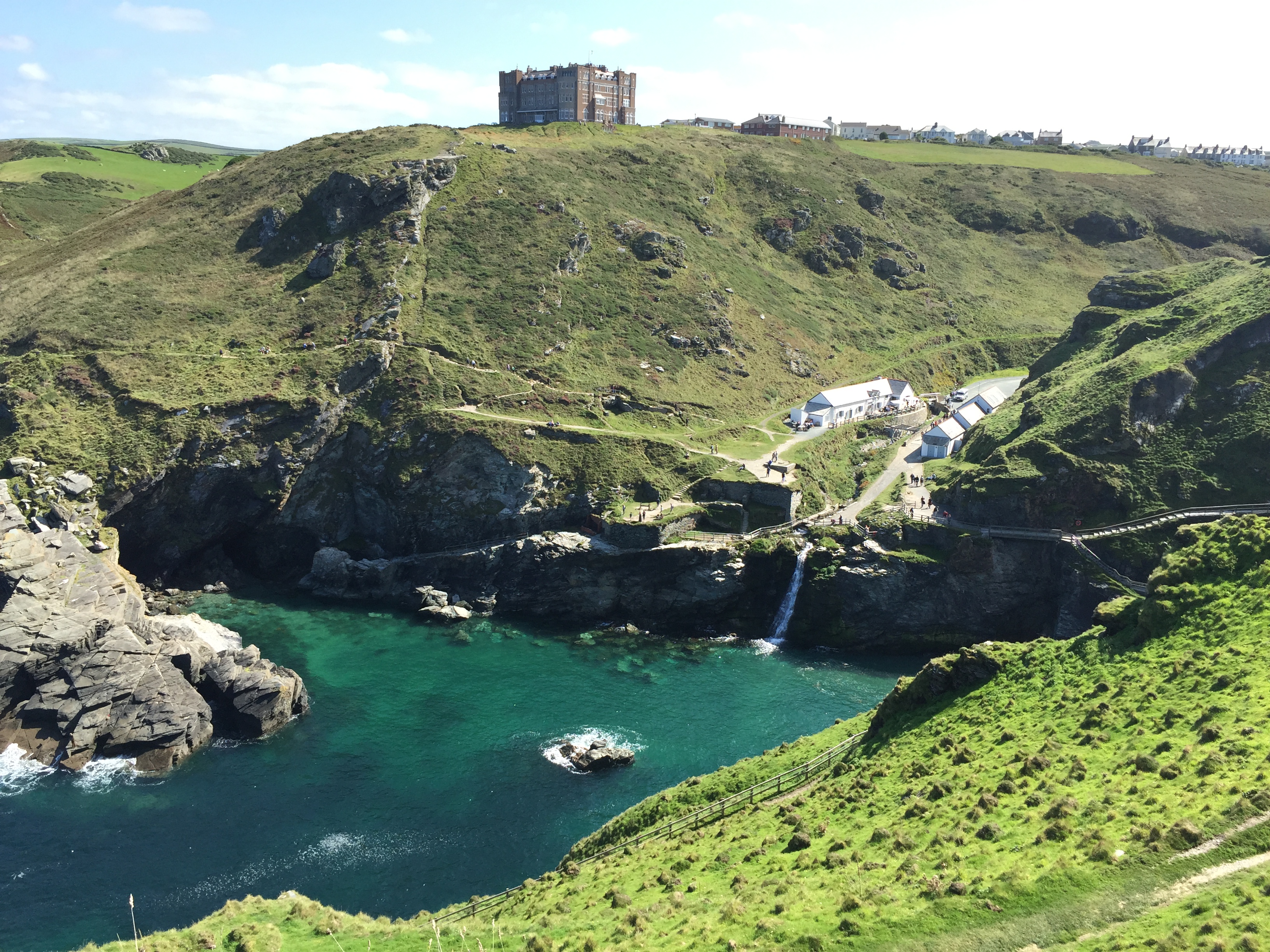 The next stop was a prime destination for me – Tintagel Castle. I’ve dreamed of going to this place since I was a small child – I read a lot of books about castles and this was my favourite. And it was everything I imagined. Tintagel the village is cute and touristy, the castle complex is huge and spectacular. The main castle is on an island just off the end of a peninsula, with a bridge connecting the two. There has been buildings on the site since Roman times, but the castle that’s there now was build in the 1200s.