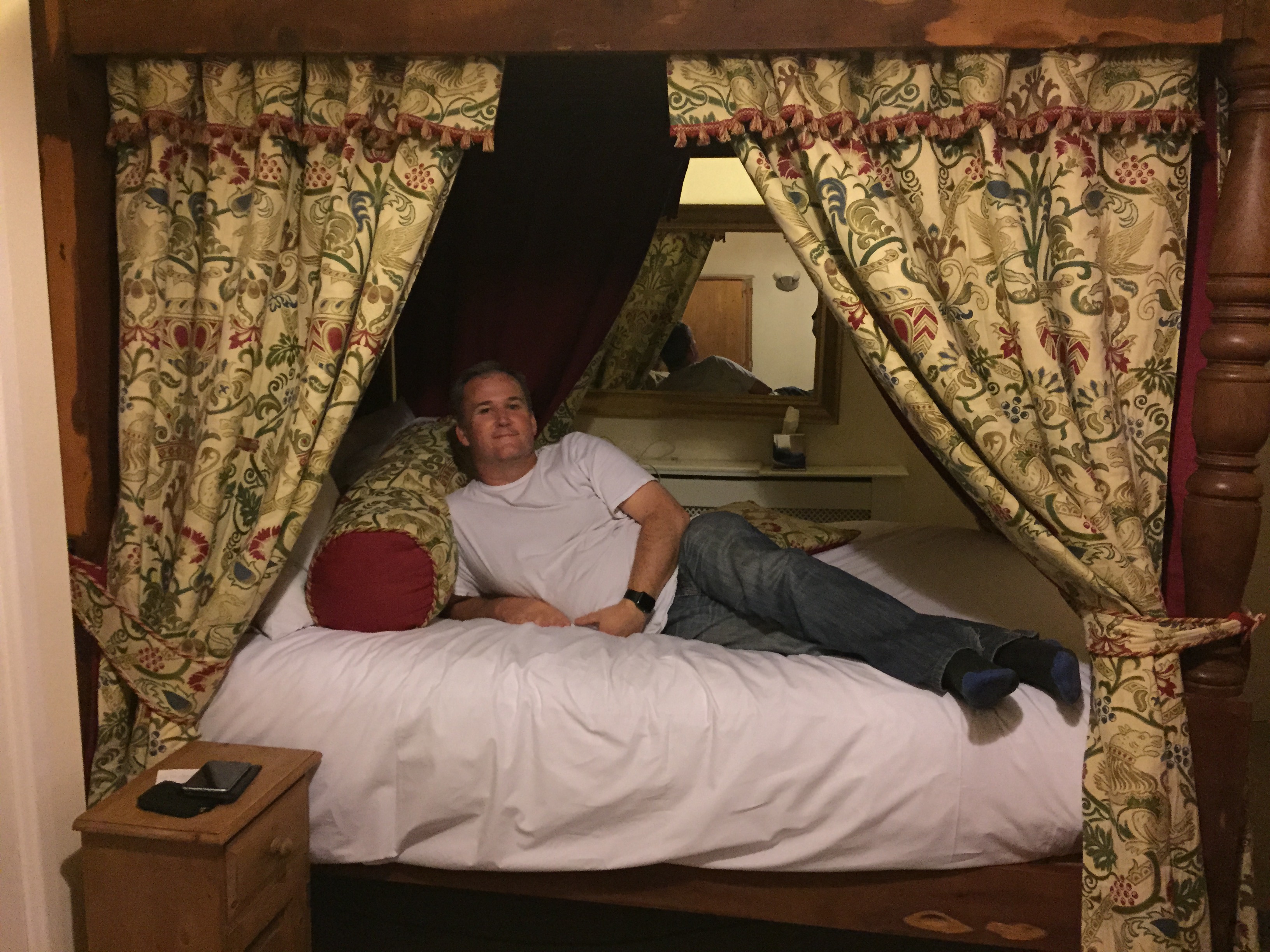 We finished the day early, heading to our (very interesting) hotel in Witney, just outside Oxford. We were given the four poster room….we slept like kings that night…